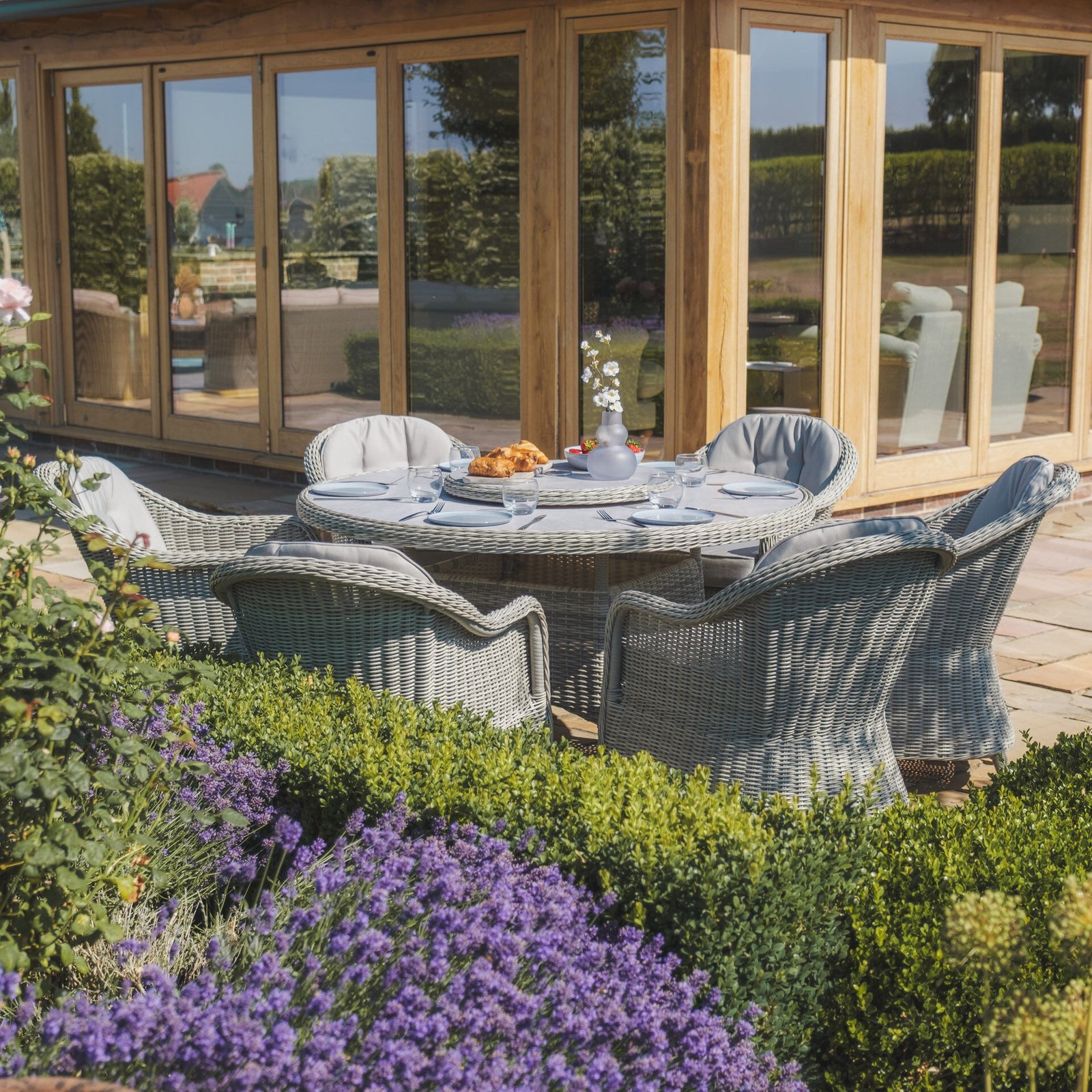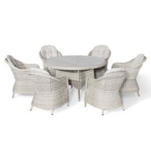 Finished in neutral grey tones, this set blends seamlessly with a variety of garden aesthetics, from classic country to modern minimalist. Whether you’re entertaining guests or simply enjoying a quiet afternoon outdoors, the Oxford 6 Seat Round Dining Set offers the perfect balance of style, functionality, and luxury for your outdoor dining area.