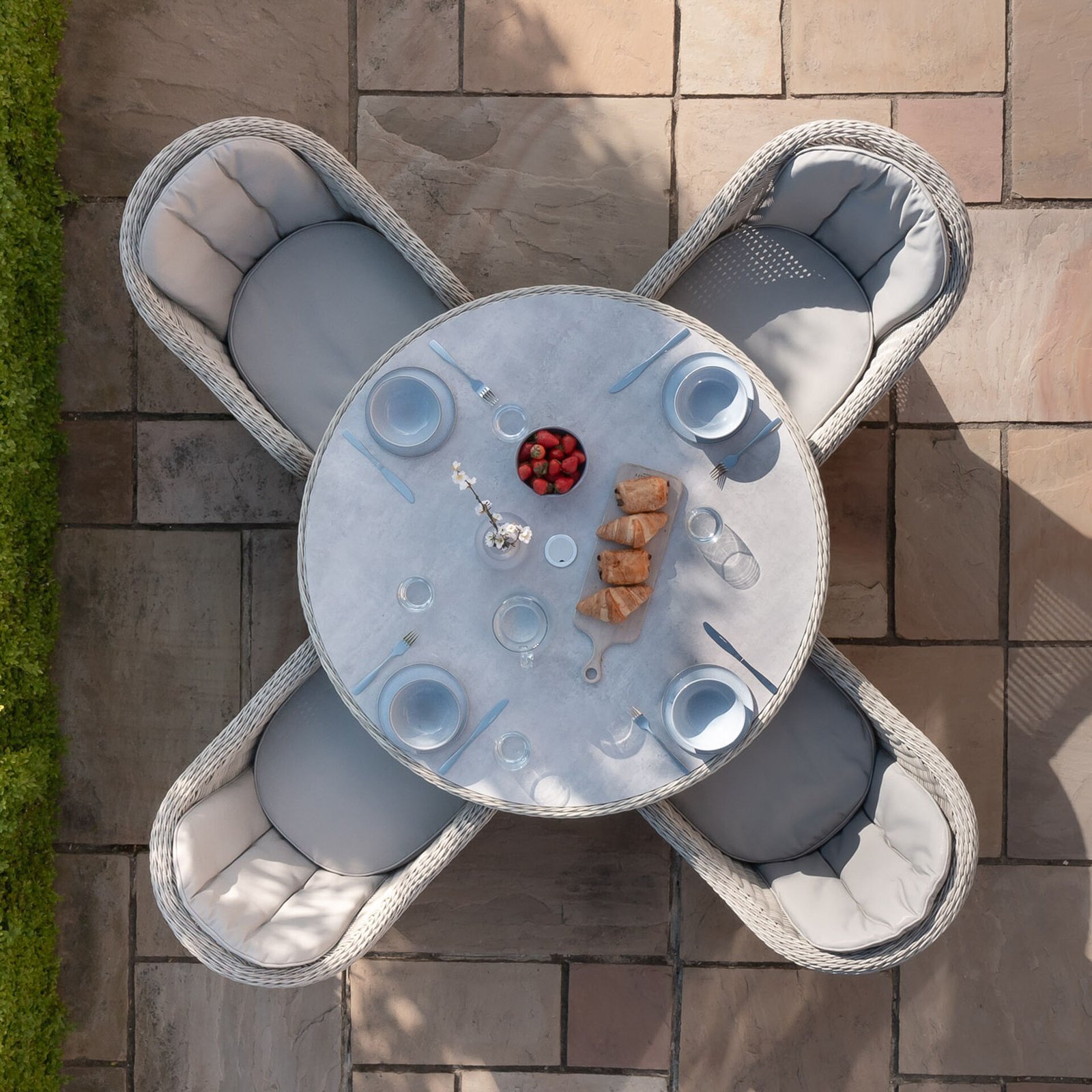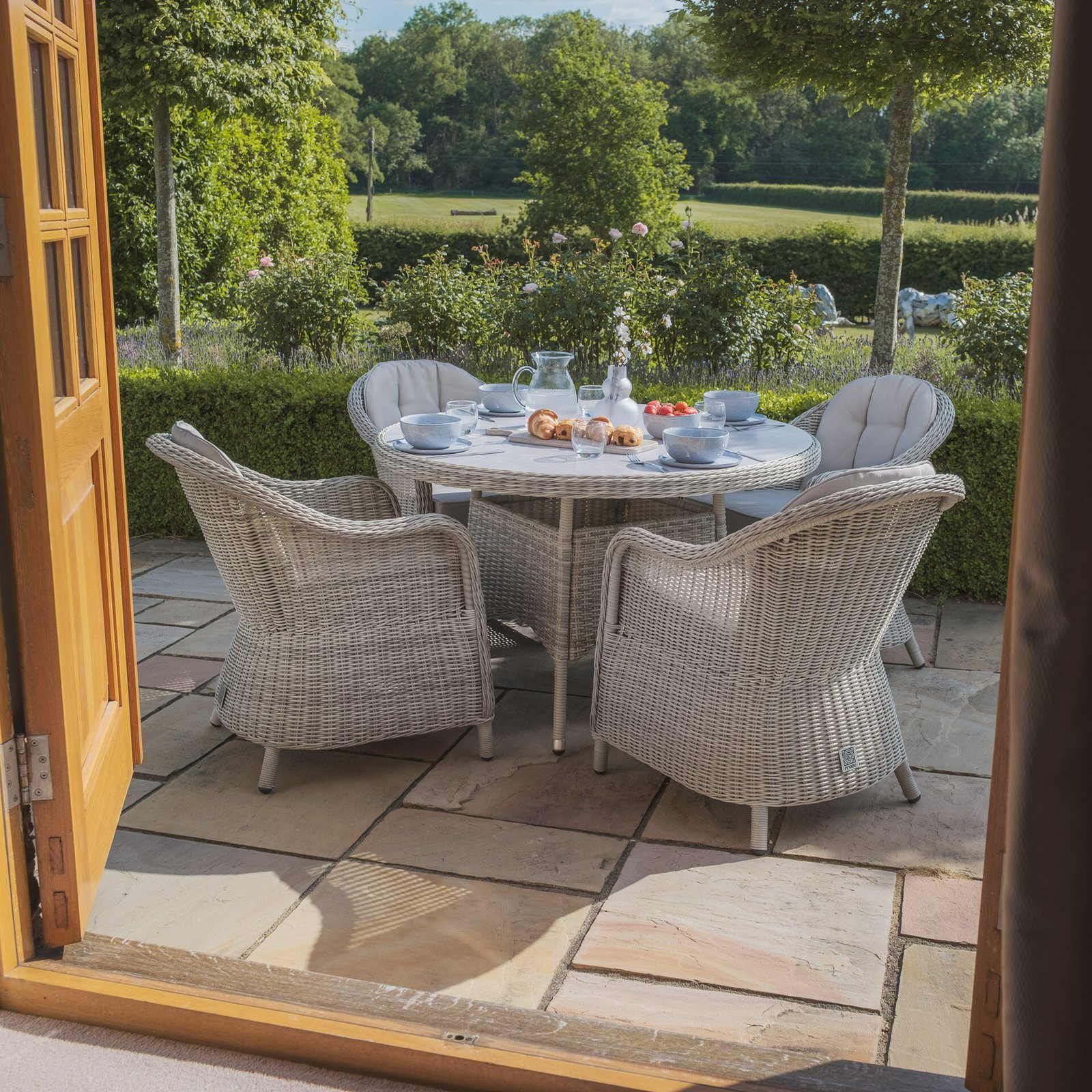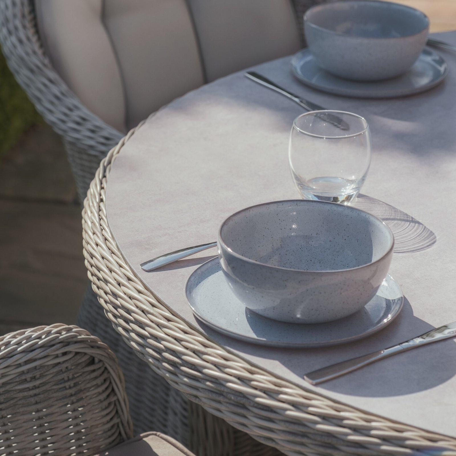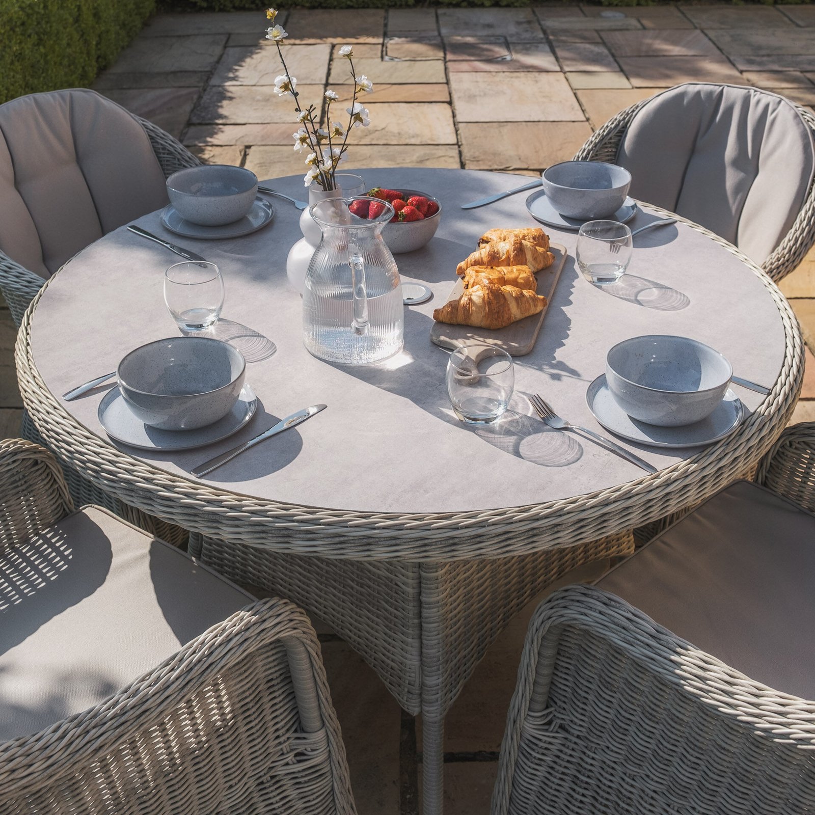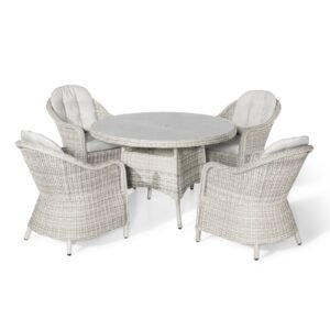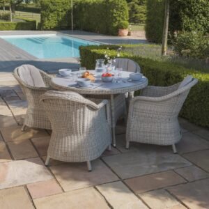 Oxford Heritage 4 Seat Round Rattan Dining Set – Ceramic Glass