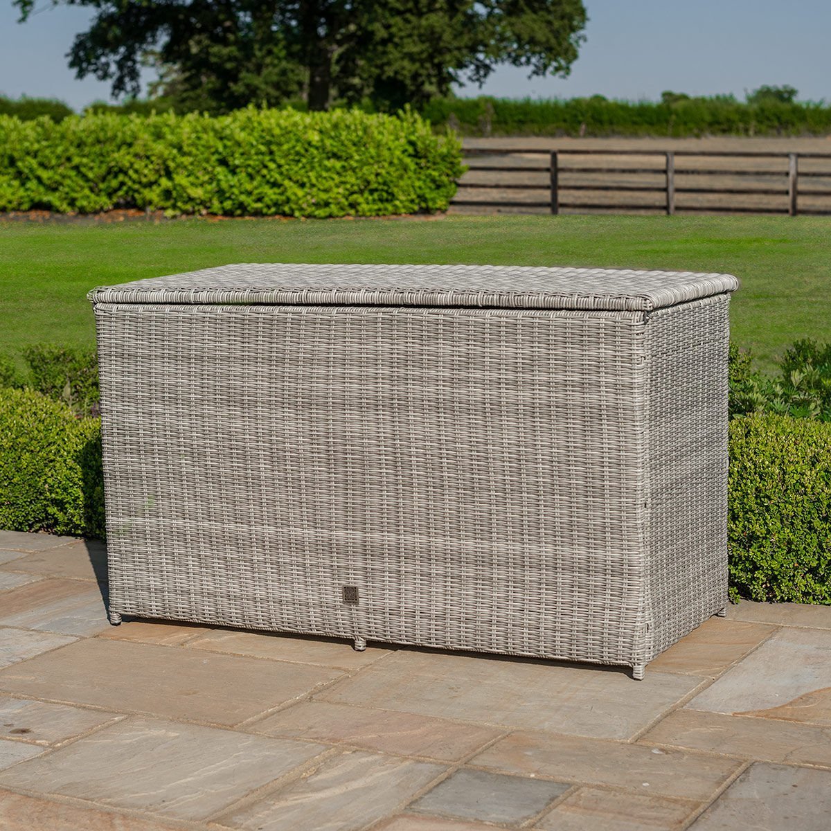 Practicality meets style with the Large Storage Box. This top-loading storage box is perfect for keeping your cushions and other garden accessories free from dirt and dust when not in use. With a solid protective top and woven rattan sides, it perfectly complements your furniture sets, while keeping your garden tidy.