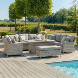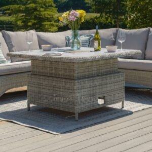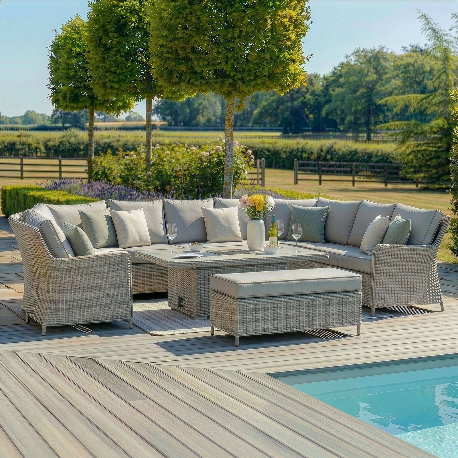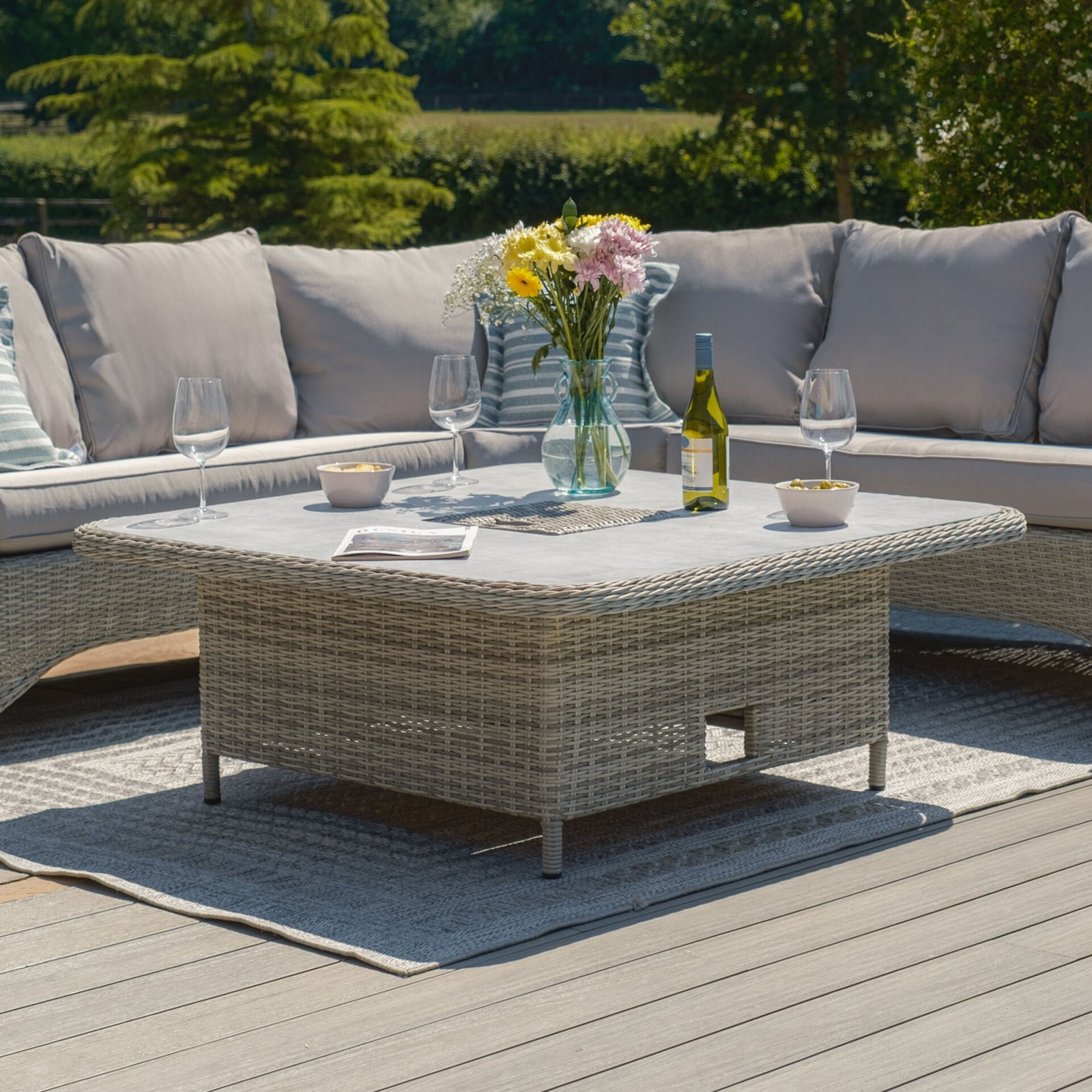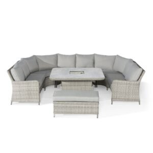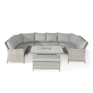 Oxford Royal U-Shaped Rattan Sofa Set with Rising Table – Ceramic Glass