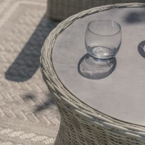 Designed for both comfort and charm, this set is instantly recognisable by its generously curved arms and supportive backs—offering a cosy and refined space for relaxing or entertaining. To enhance practicality, the set is finished with a light grey ceramic tempered glass tabletop, providing a sleek, easy-to-clean surface perfect for drinks, snacks, or décor.