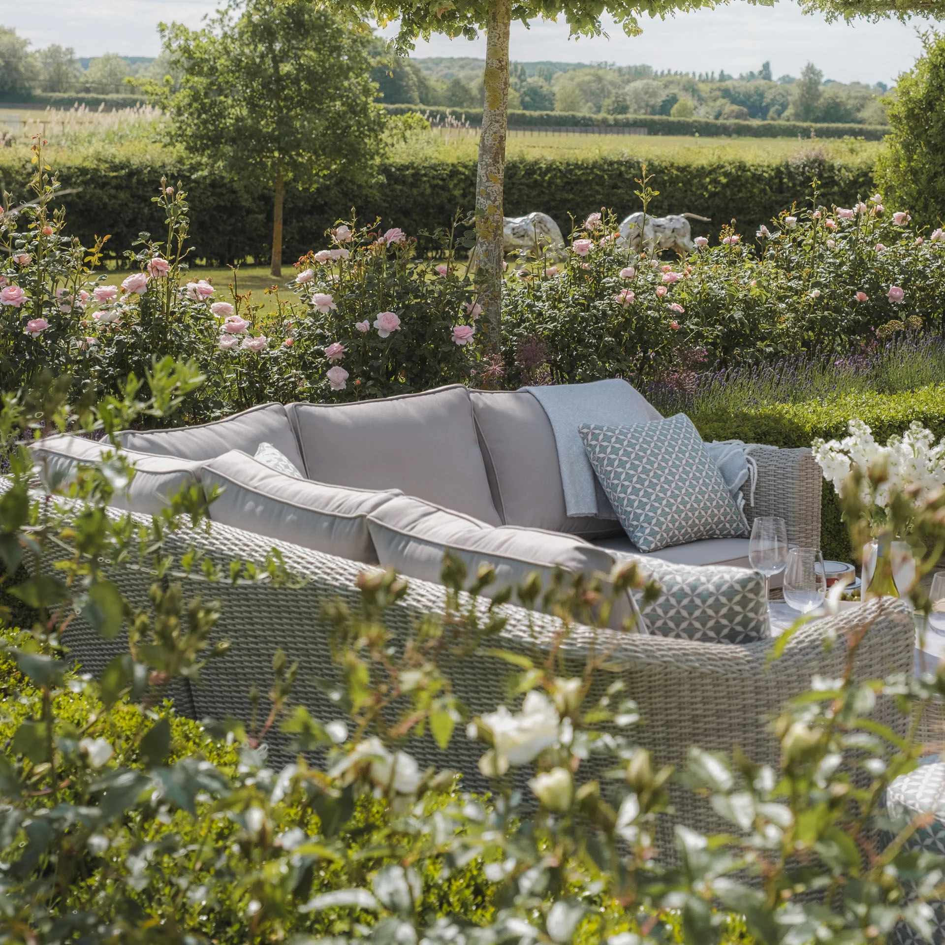 Expertly hand-woven from premium, weather-resistant polyethylene (PE) rattan and mounted on a durable powder-coated aluminium frame, this set is designed for year-round use with minimal upkeep. Cushions are made with shower-resistant fabric and supportive foam filling, ensuring comfort and resilience—though we recommend storing them indoors overnight to extend their life.